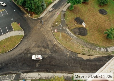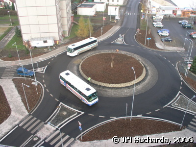 Kruhový objezd se svažuje