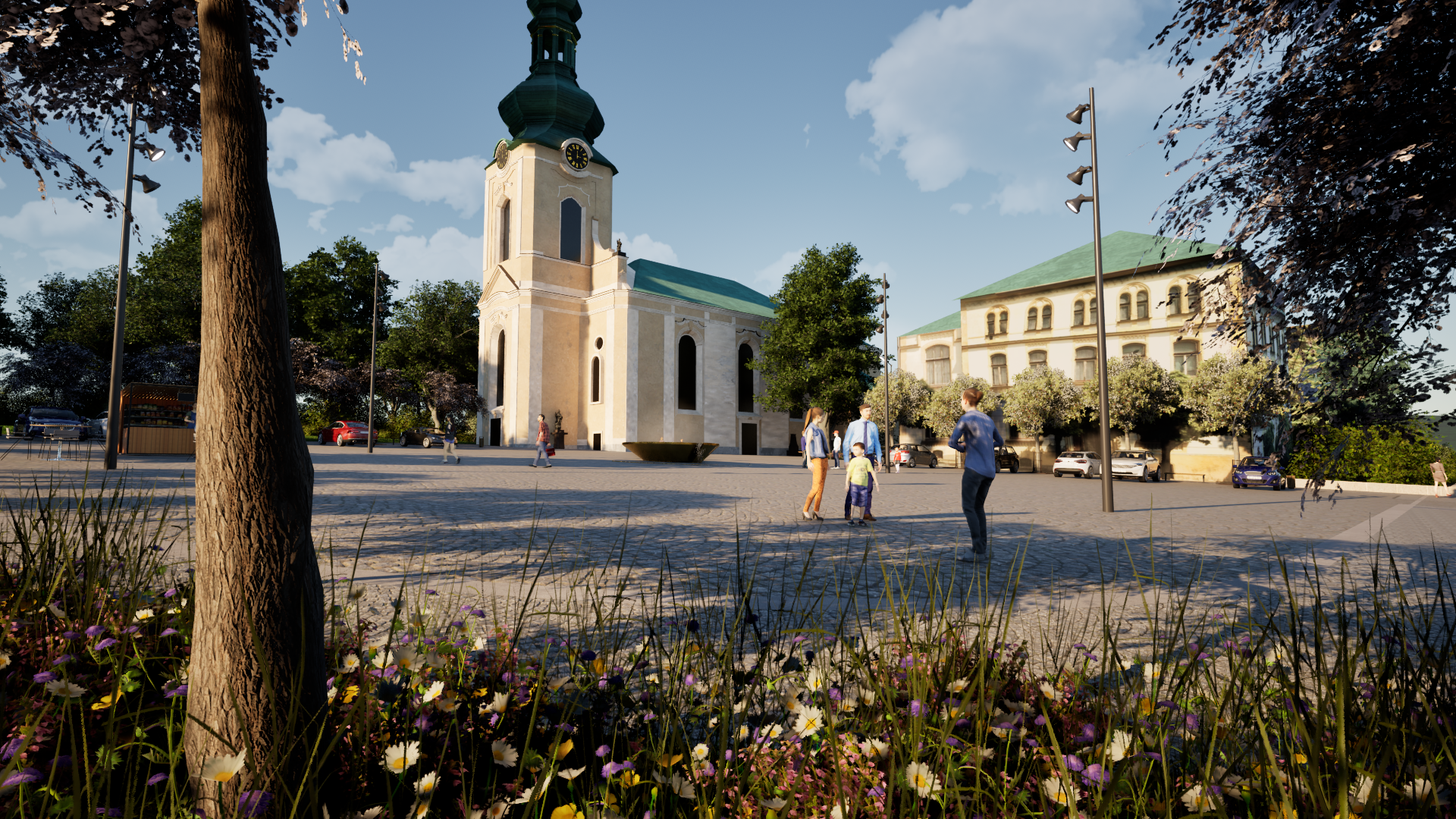 V projektu je zahrnuta i tzv. „zelená infrastruktura“. Dešťová voda ze střechy kostela, fary a plochy náměstí bude zachycena do podzemních nádrží. Zadržená voda se bude následně využívat pro hydrataci rostlin, keřů a květin nejen na náměstí, ale i před základní školou a budovou městského úřadu.