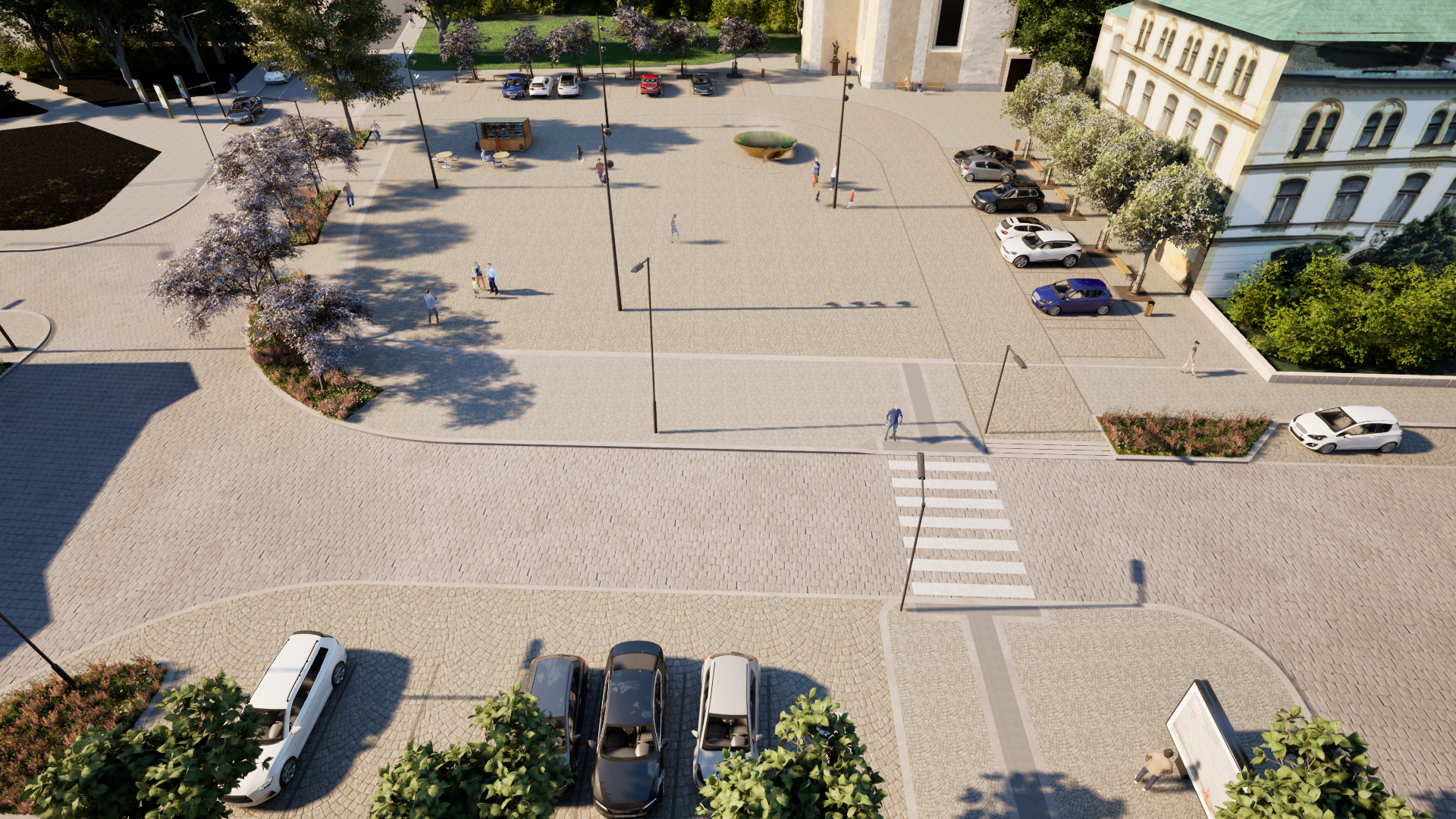 Základním cílem je vytvořit důstojné centrum města a navrátit náměstí více jeho přirozenou roli, jako místa pro setkávání, trhy, společenské a kulturní akce. Parkovací stání budou nově, spolu se stromy, po obvodu plochy a střed náměstí tak zůstane čistě pobytovým prostorem pro různé aktivity či posezení.