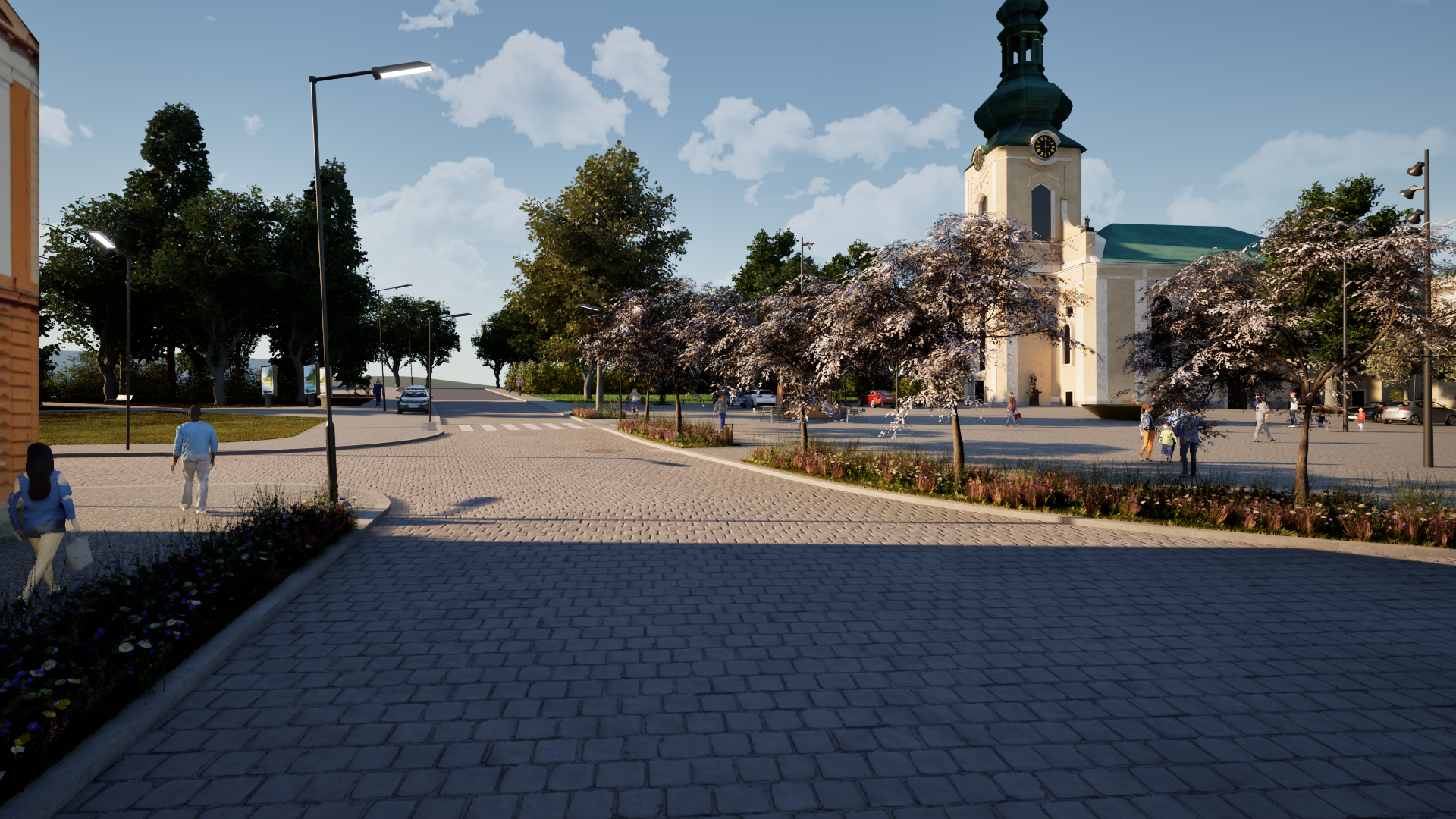 Proměnou projdou i příjezdové cesty k náměstí. Komunikace, které budou nově z žulových kostek, se z důvodu zklidnění dopravy zúží a vzniknou parkovací zálivy.
