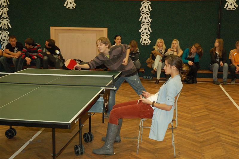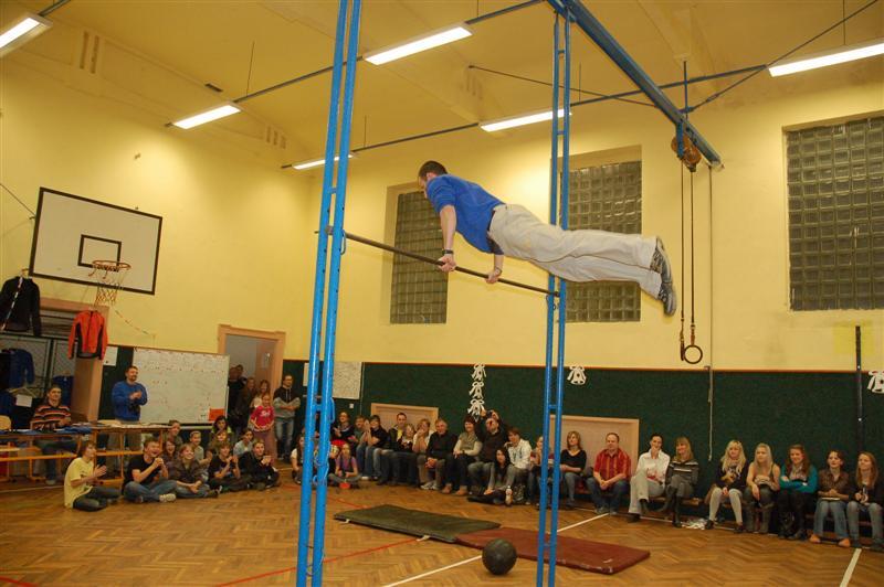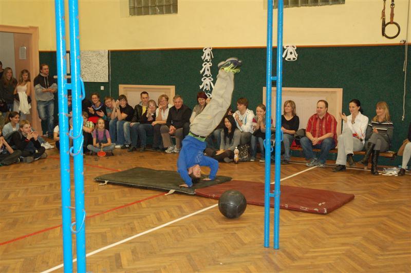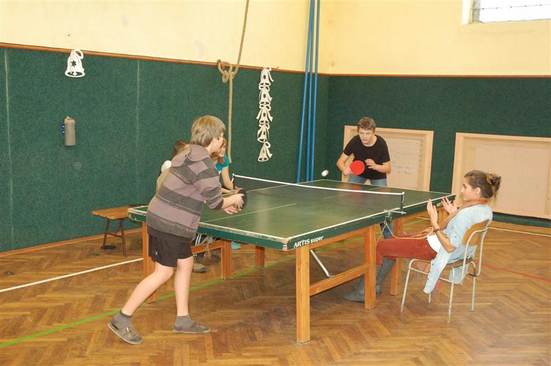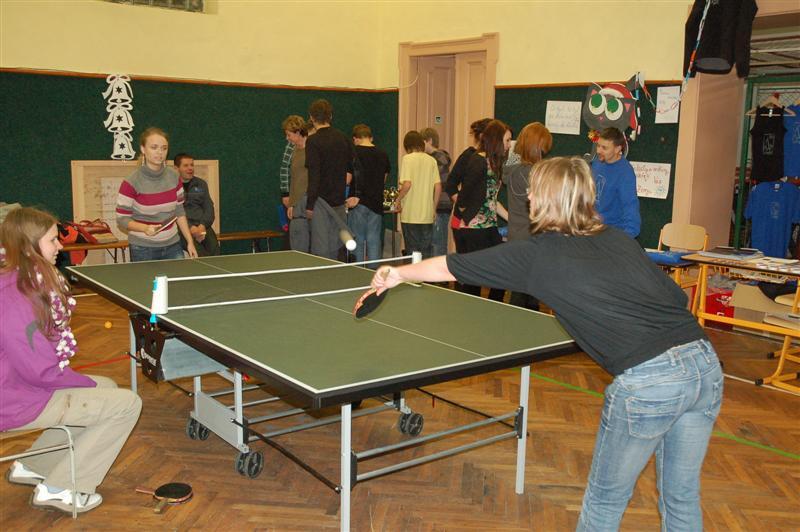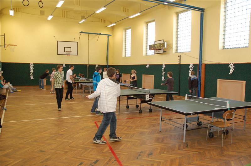 Již ve čtvrtek byl zahájen 24hodinový maraton ve stolním tenise, takže ten, kdo přišel na páteční Den otevřených dveří, mohl kromě prohlídky školy, učeben a vzorové výuky sledovat i jeho finále. Zakončení celé akce vyvrcholilo večer v tělocvičně, kde byl kromě jiného podán důkaz, že nové oblečení se symbolikou gymnázia je vhodné i pro nejrůznější sportovní aktivity.