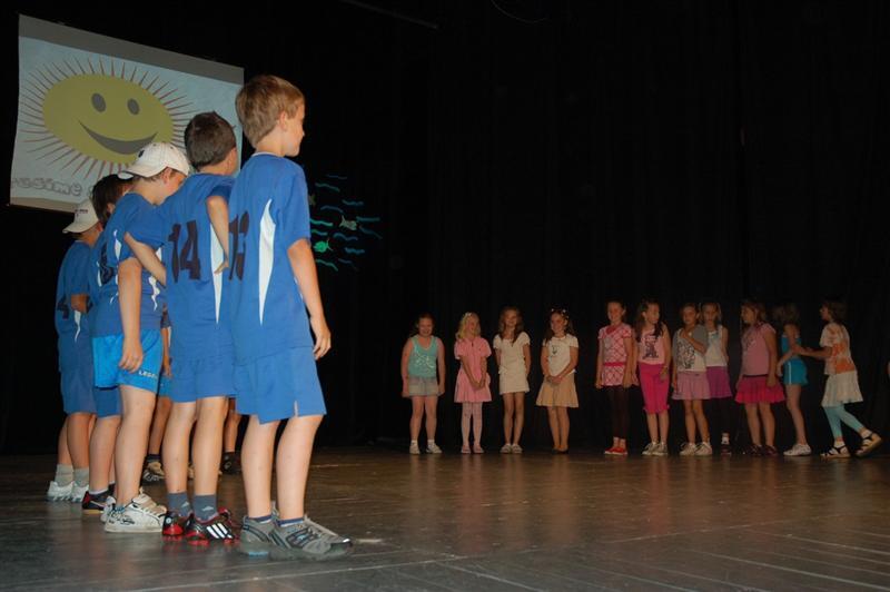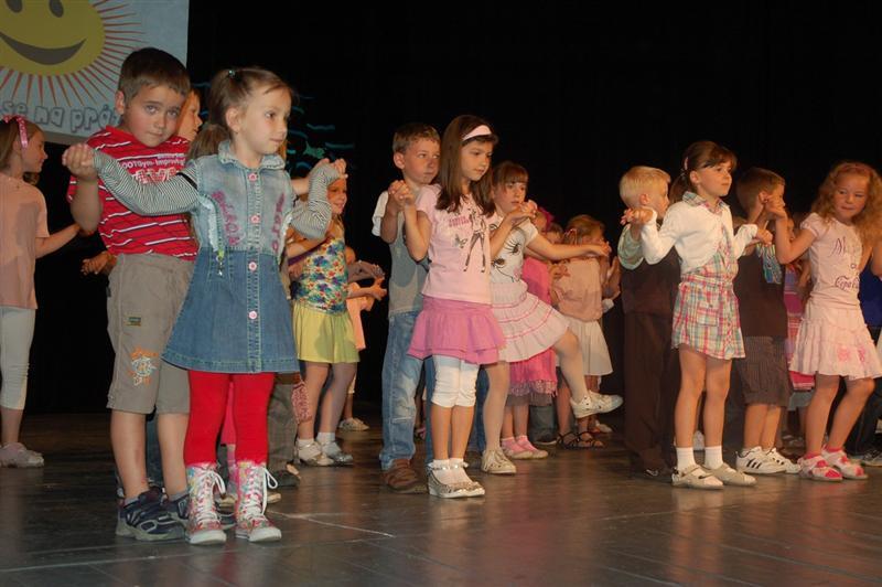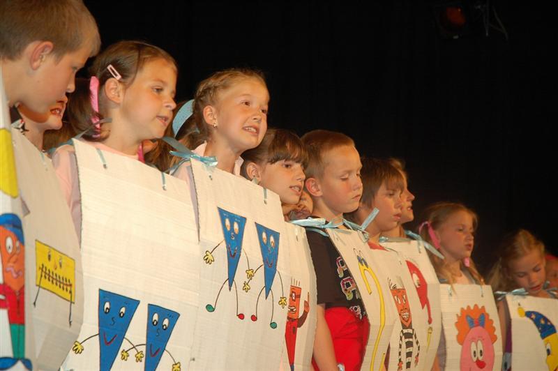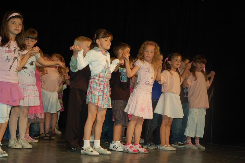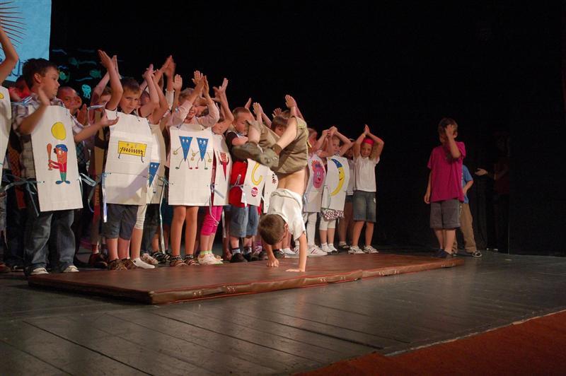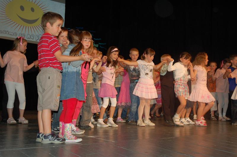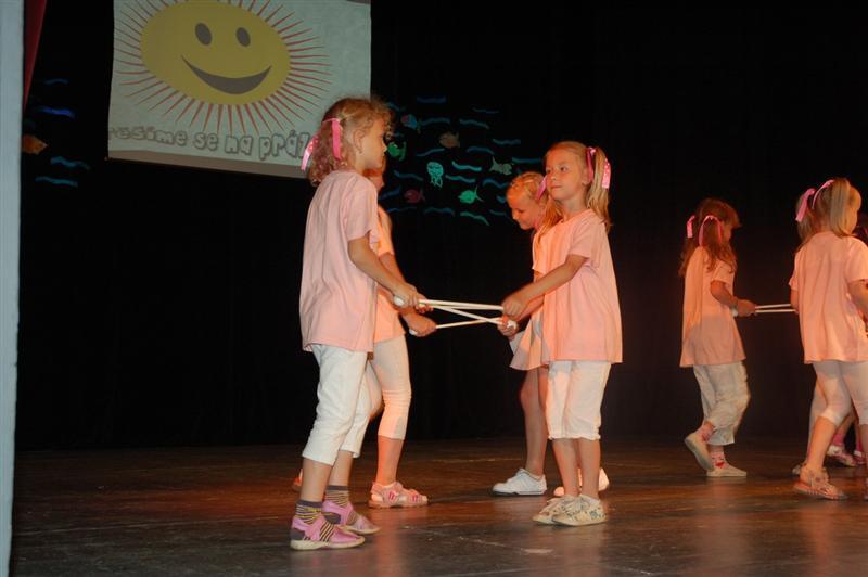 Svá vystoupení před zcela zaplněným hledištěm předvedli žáci prvního stupně. Pyšní rodiče mohli shlédnout nejrůznější tance, pohádky, divadelní hry, sportovní ukázky či hudební produkce, to vše komentováno žáky 3. B Machem a Šebestovou.