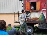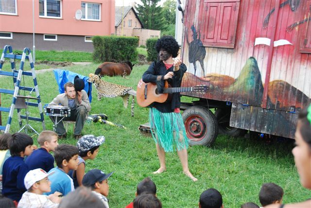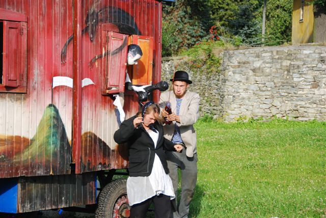 Maringotky jsou v dnešní době doménou pouťových atrakcí, spíše než znakem kočovného divadla. Kočovné divadlo! To je to spojení, které hledáme. Pokud jste si totiž ve středu 18. července vyšli na procházku do ulic města, mohli jste spatřit příznačně nabarvenou maringotku, která patří divadelnímu uskupení, které si říká Divadlo Koňa a Motora.
