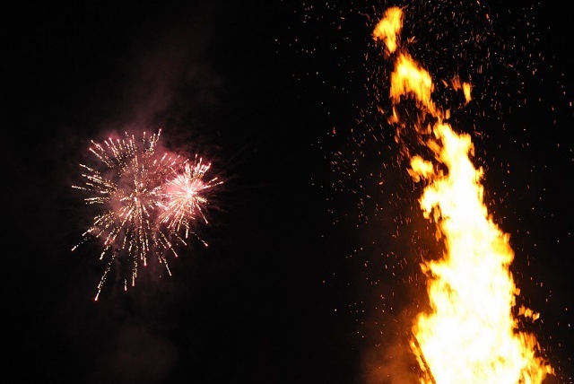Ale pozor, průvod už dorazil. Udělejte místo Rampušačce, která si vás všechny chce ještě zblízka prohlédnout, než chtě nechtě zakotví na špici vatry. Za zvuků Dvořákových Slovanských tanců přichází to, na co se tu nejvíc čekalo: parádní ohňostroj. Opět pod dirigentskou taktovkou mistra ohňostrojáře Jaroslava Novotného. (Zde odbočím k poděkování nejen jemu, ale i Jiřímu Petrovi, který třaskavou show gratis ozvučil. Ostatní organizátorská díky najdete pěkně pohromadě o kus dál.)
