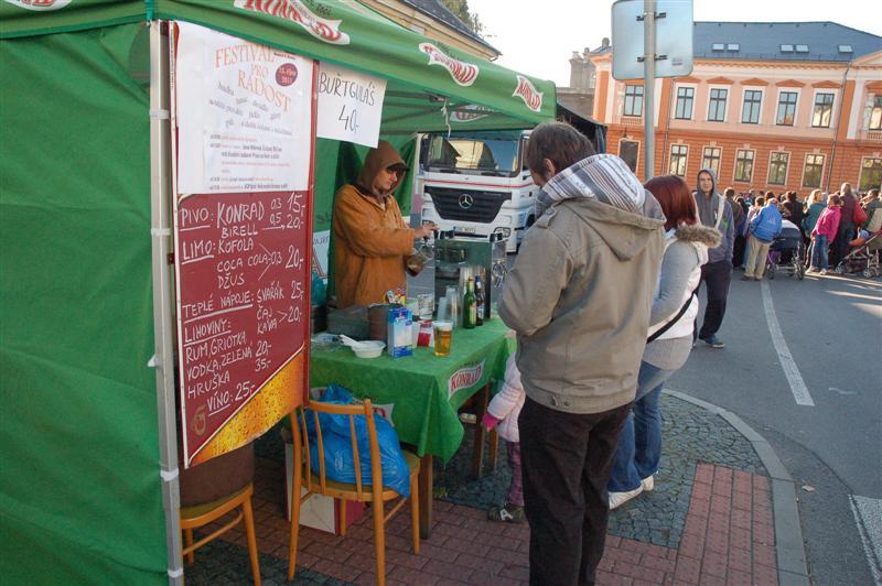Ve stejnou hodinu začal v ulicích města také Festival pro radost, který vyvrcholil odpoledne hlavním programem na náměstí. Tady byla pro všechny připravena nabídka hudby, tance, divadla, jídla a pití, všelijaké hry pro děti, ukázka modelů letadel i autíček a plno další zábavy. Na závěr pak zamířil z náměstí průvod "Za lepší náladu ve městě"do pivovaru Kocour, kde se zapojil do pokračování trhů a posvícení.