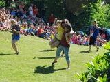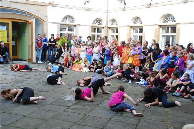 Hlavní přehlídka se konala v neděli v divadle, ale s účinkujícími jsme se mohli potkat i po městě při jejich exteriérových představeních. Přijely taneční soubory z Rychnova u Jablonce nad Nisou, z Kutné Hory, Roztok, Jilemnice a Krnova a nechyběla samozřejmě reprezentace pořádající ZUŠ Varnsdorf.