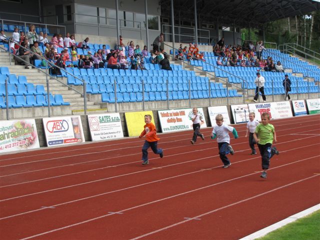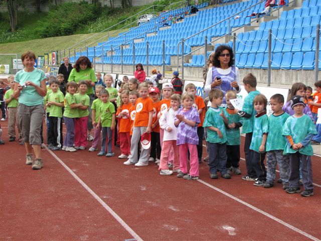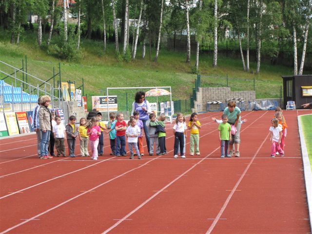 Malé děti (broučci a berušky) soutěžily v běhu na 30 m, skoku z místa a v hodu tenisovým míčkem. Předškoláky a předškolačky čekaly stejné disciplíny, běžecká trať však měla délku 50 m.