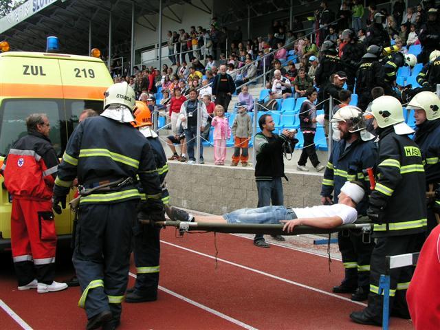 Celodenní pestrý program byl v krásném prostředí stadionu zahájen živou hudbou. Po atletické dráze zatím probíhal závod mladých atletů, které posléze na dokonalém zeleném trávníku vystřídala se svým vystoupením taneční skupina Stars. Pozornost velkého počtu diváků, kteří zaplnili prakticky celou tribunu, upoutala ukázka na freestylových kolech. Herby Schwarz předváděl s kolem pod tribunou nevídané kousky. Očekávanému průletu letadla se seskokem parašutistů bohužel nepřálo počasí, neb obloha byla zatažená. Ale dešťových kapiček jsme se naštěstí nedočkali. Naopak, příjemný vánek jako by přivál vrtulník Záchranné zdravotnické služby Libereckého kraje. Ta v součinnosti s hasiči a zásahovou jednotkou Policie ČR předvedla záchrannou akci při zinscenované rvačce mladých neposlušných diváků, která se stala bonbónkem odpoledního programu celé oslavy. Velký potlesk diváků byl dostatečným poděkováním za perfektní ukázku zásahu, ošetření a následného přistání vrtulníku, který si diváci se zájmem shlédli přímo na ploše hřiště. Polední program byl v nohách nejmenších fotbalistů, kteří v turnaji předvedli, že ve městě fotbal roste a vzkvétá. Svůj vztah ke sportu předvedly i ženy při atletických závodech. Na slavnostním otevření nesměly chybět ani slavnostní projevy nejpovolanějších, starosty města Ing. Josefa Poláčka a předsedy představenstva TOS Varnsdorf, a.s. Ing. Jana Rýdla. Při této příležitosti byli starostou oceněni i varnsdorfští plavci, Karolína a Martin Špičkovi, kteří na III. letní Olympiádě dětí a mládeže ČR 2007 výborně reprezentovali naše město.