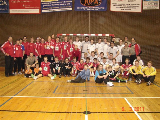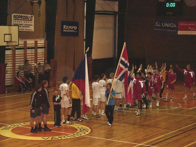 Varnsdorf se po duelech našich fotbalových mládežnických reprezentací s Polskem a Německem před čtyřmi, resp. třemi lety v Kotlině prvně dočkal i mezistátního utkání v házené mezi juniory ČR a Norska. Díky snaze házenkářských činovníků TJ Slovan Varnsdorf a především Antonína Hozmana, bylo využito pobytu obou reprezentací v nejsevernějším regionu Čech a do varnsdorfské sportovní haly se dojednala tato zajímavá akce. Samotné utkání mělo předehru ve skvělém vystoupení tanečníků skupiny E-XTREME CREW, které sklidilo zasloužený obdiv a potlesk. Pak už přišel na řadu slavnostní nástup, hymny obou zemí a čestný "výhoz" míče do zápasu starostou města Martinem Loukou. Naše mladá reprezentace šla hned v úvodu do vedení a nepřišla o něj po celý průběh poločasu, v němž stále vedla o dvě až pět branek.