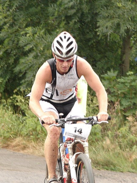 Mužům také dle předpokladů vévodil Pavel Jindra, specialista a český reprezentant v terénním triatlonu. Pod kotlem se mu snažil zatápět pouze jablonecký Michal Francke, pro změnu specialista na klasický silniční triatlon. Třetím místem absolutně pak překvapil věkem teprve junior, avšak velký talent, Matěj Zahálka z Libochovic. Vítězi v kategoriích se pak stali Michal Francke (M20), Pavel Jindra (M30), Pavel Suchý (M40), Jaroslav Balatka (M50).