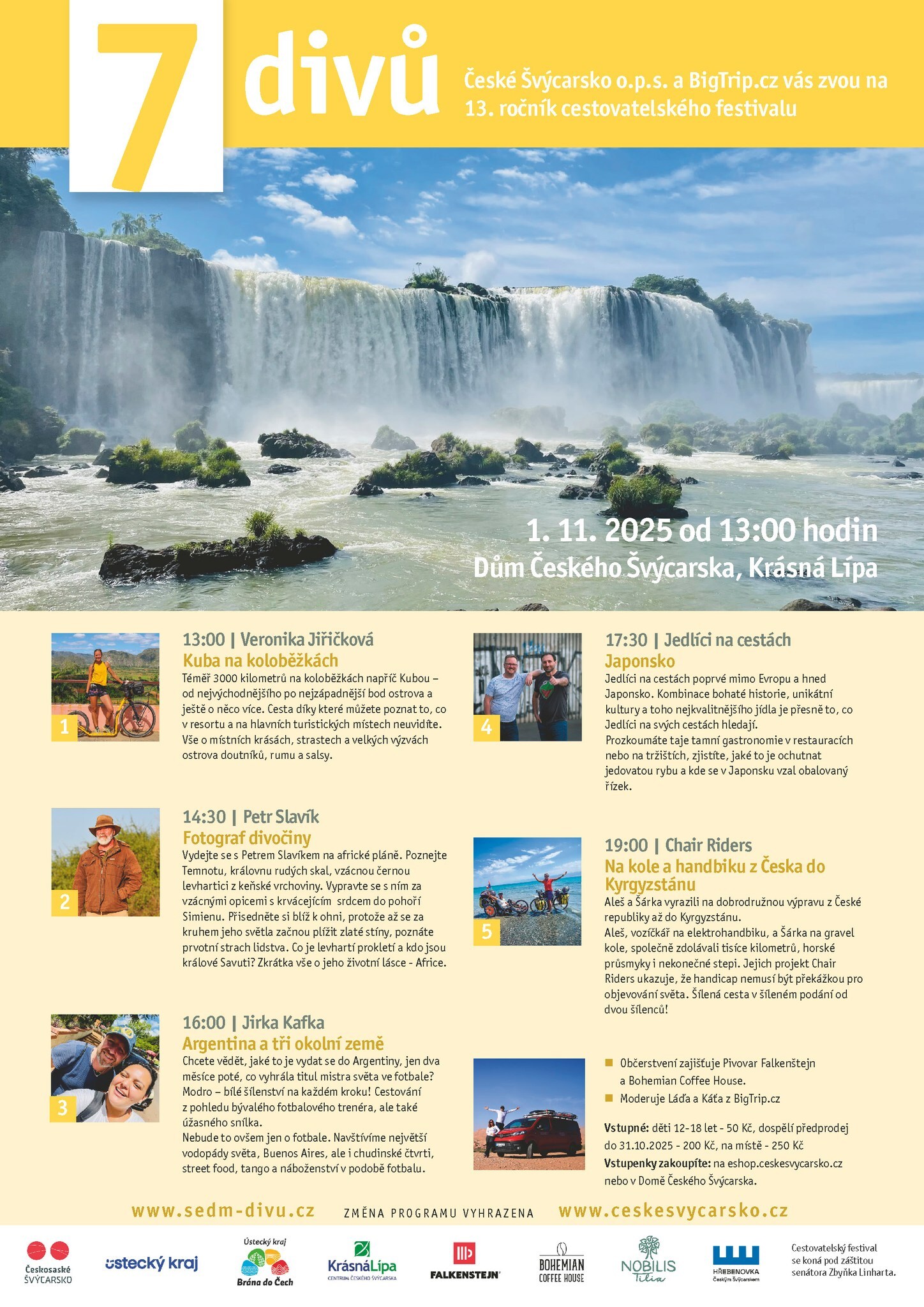 Cestovatelský svátek plný dobrodružství, odvahy a inspirace je už 1. listopadu – a my z Visit Varnsdorf u toho rozhodně nebudeme chybět! Nechte se vtáhnout do příběhů z Kuby, Afriky, Argentiny, Japonska i Kyrgyzstánu…