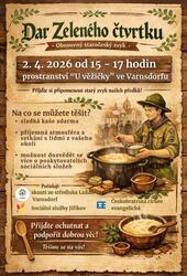 Přijďte si na prostranství „U věžičky“ připomenout obnovený staročeský zvyk „Dar Zeleného čtvrtku“ spojený s ochutnávkou sladké kaše zdarma. Akce nabízí příjemné sousedské setkání i možnost dozvědět se více o poskytovatelích sociálních služeb v regionu.