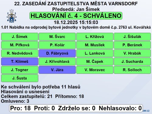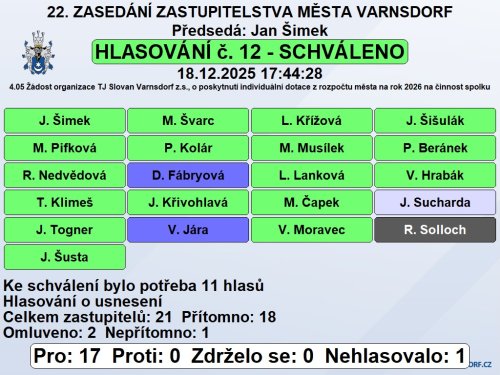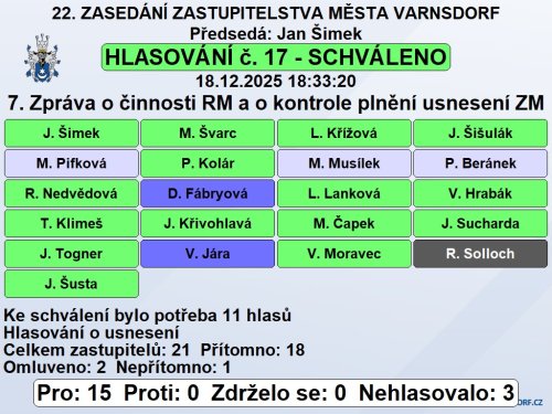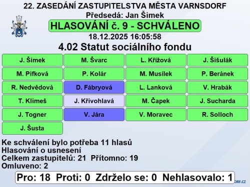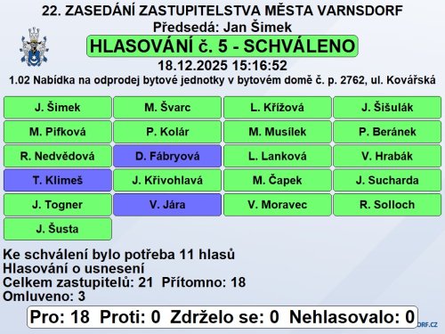 Usnesení z 22. zasedání Zastupitelstva města Varnsdorf