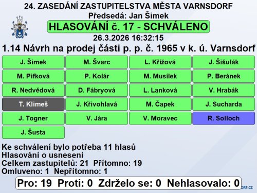 (Zastupitelstvo města rozhodlo stáhnout bod 1.14 z programu zasedání.) (výsledky hlasování)