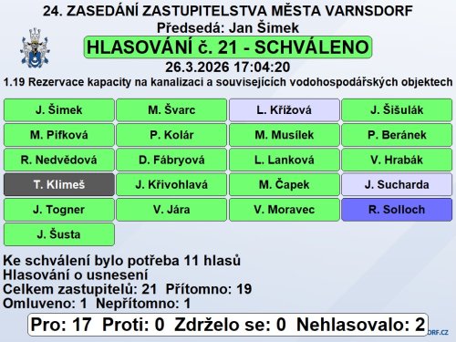 Zastupitelstvo města rozhodlo schválit rozvoj/rezervaci kapacity ve výši 450 obyvatel, resp. ekvivalentů produkce v případě kanalizace ve vazbě na akci Zkapacitnění čerpací stanice odpadních vod „Varnsdorf – Hrádek“ pro zpracování investičních záměrů jednotlivých opatření, která po jejich realizaci a uvedení do provozu uspokojí rozvojové potřeby města v jimi definovaném rozsahu.