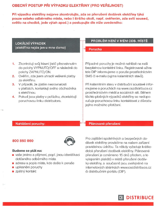 Co dělat a kam volat v případě výpadku proudu