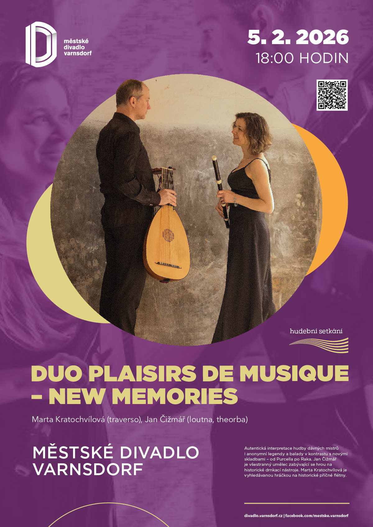 Hudební program New Memories nabízí jedinečné setkání s autentickou interpretací děl starých mistrů i moderních skladeb, které vás provedou historií od baroka až po současnost.