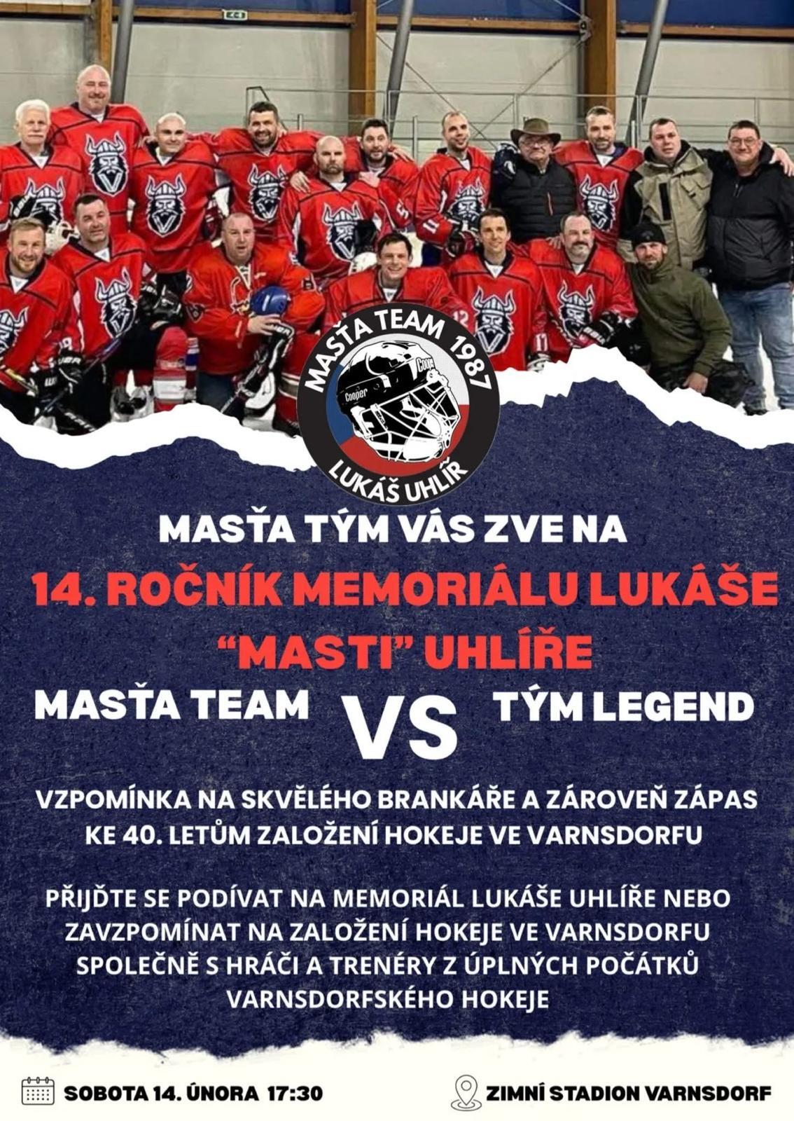 Zimní stadion hostí 14. ročník Memoriálu Lukáše „Masti“ Uhlíře, legendárního brankáře a opory hokejové generace 1981, spojený s velkou oslavou 40 let od založení hokeje ve Varnsdorfu. Na ledě se v rámci duelu „Masťa Team“ versus „Tým Legend“ sejde na čtyřicet hráčů a deset trenérů, kteří stáli u zrodu místního oddílu v roce 1986. Přijďte si zavzpomínat na hokejové začátky a podpořit tuto výjimečnou sportovní tradici našeho města.