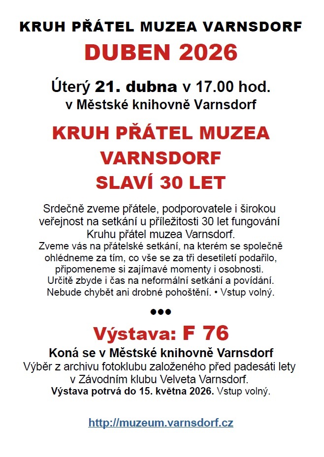 KPMV srdečně zve přátele, podporovatele i širokou veřejnost na setkání u příležitosti 30 let fungování Kruhu přátel muzea Varnsdorf.